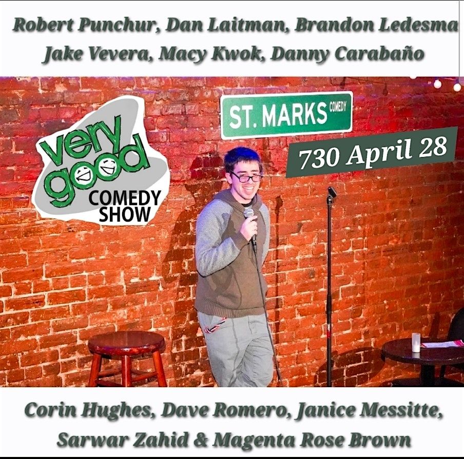 Very Good Comedy brings a showcase of NYC's very goodest standups to St Marks Comedy Club 730 April 28.