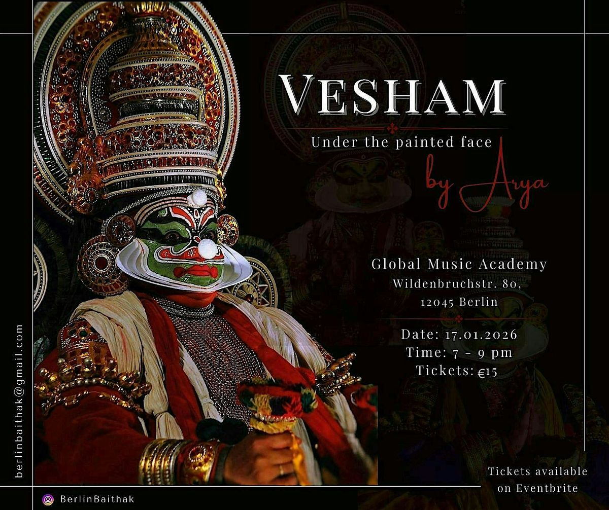 At the heart of this evening is the spirit of Berlin Baithak, an intimate, thoughtfully curated space that bridges the gap between performer and audience, tradition and contemporary context, cultural specificity and shared human experience. By bringing a grand, highly formal art form like Kathakali into close proximity, the Baithak invites audiences to notice what is often missed on large stages: the breath behind the movement, the effort behind the stillness, and the transformation that unfolds beneath the spectacle.