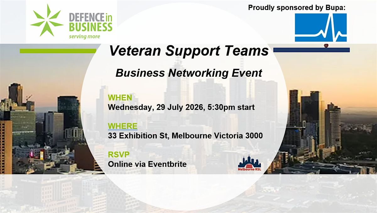 This exclusive event is designed to bring together the Victorian Defence in Business community - ex-service professionals, employers, business owners, and supporters - to connect, exchange insights, and explore current and emerging opportunities.