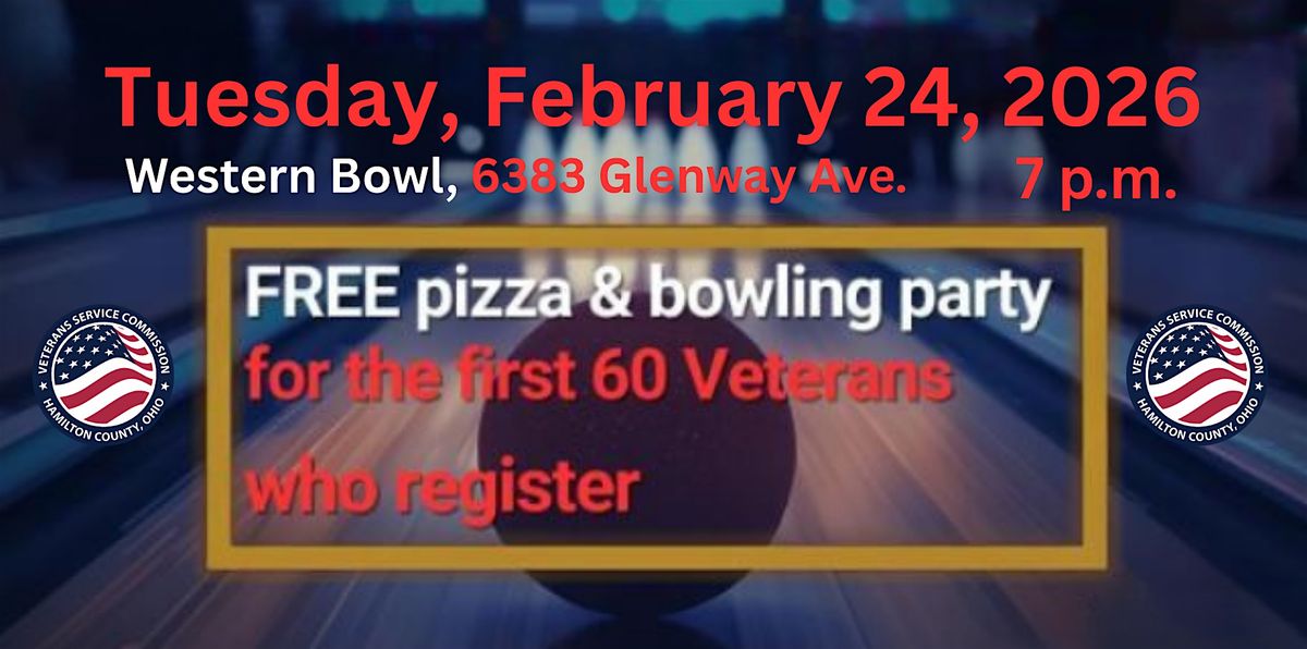Welcome all veterans to the Veterans FREE Pizza and Bowling event at Western Bowl! Join us on February 24, 2026 at 7:00 PM for a fun evening of bowling and delicious pizza.