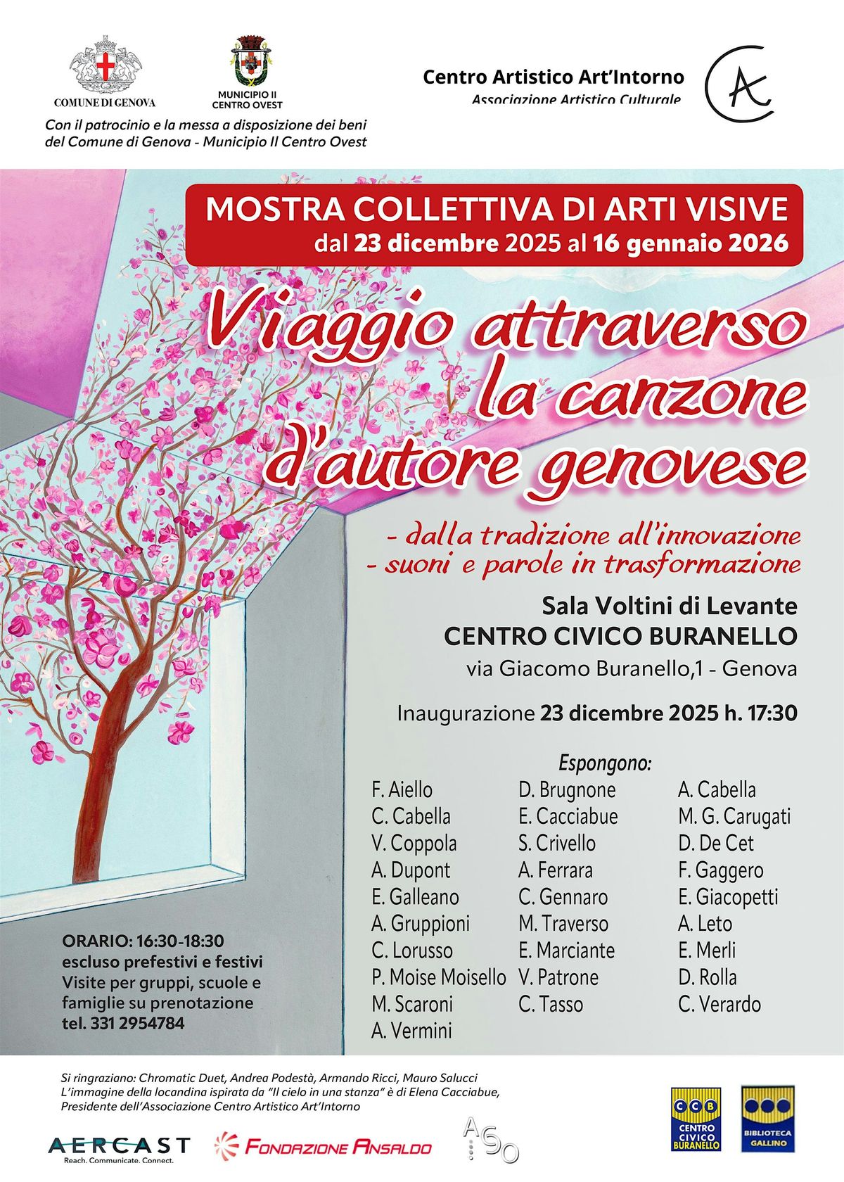 dal 23 dicembre 2025 al 16 gennaio 2026, h. 16,30- 18,30 escluso i prefestivi e festivi