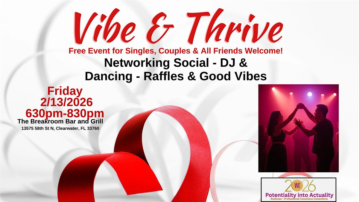 Vibe & Thrive is a free, high-energy social dance and networking experience created for singles, couples, and friends who love great music, genuine connection, and good vibes all around.