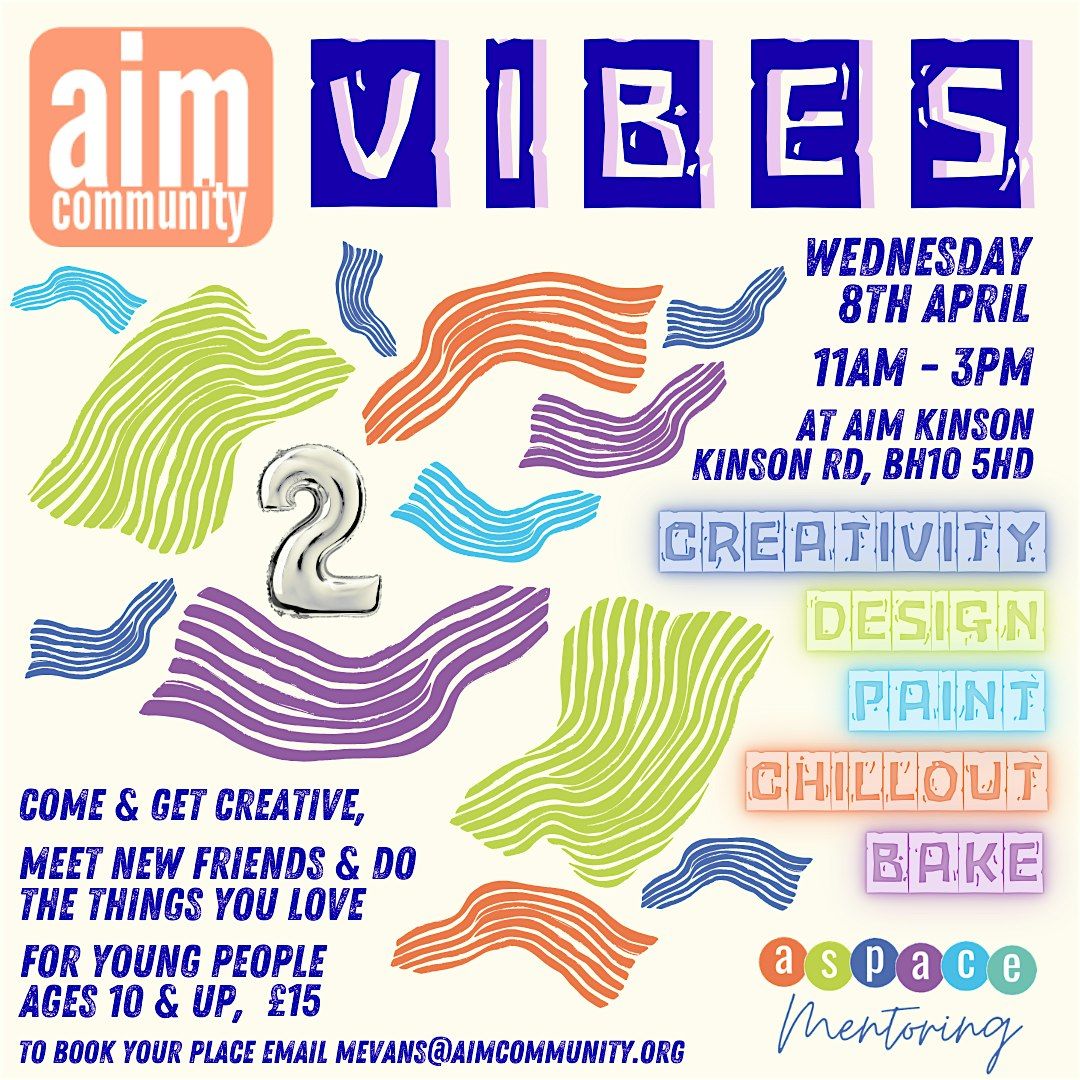At AIMCommunity, weβre passionate about creating spaces where young people can feel relaxed, be themselves, and get creative. VIBES 2 is all about exactly that, a chilled, welcoming environment where creativity and connection come together.