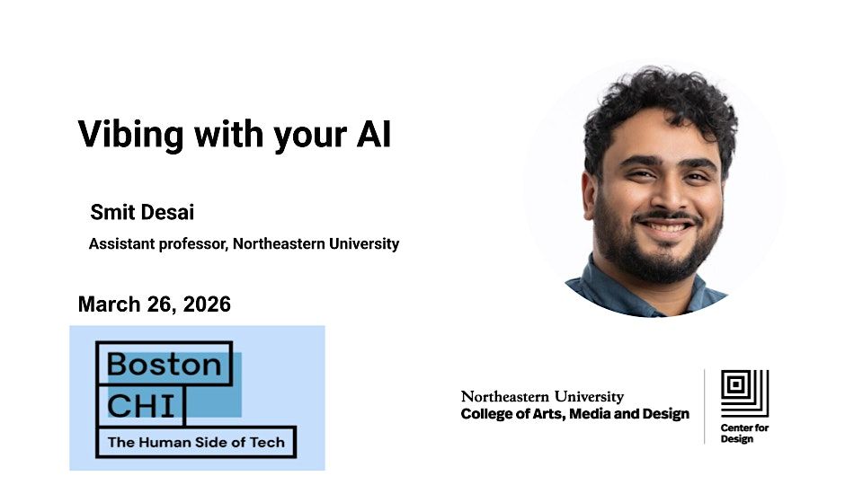 Smit Desai is an Assistant Professor in the College of Arts, Media and Design (CAMD) at Northeastern University, with joint appointments in Art + Design and Communication Studies and an affiliated appointment in the Khoury College of Computer Sciences. He directs the Conversational Human–AI Interactions (CHAI) Lab, which investigates how people understand, trust, and collaborate with conversational AI—and how these systems can be designed to augment human capabilities and support meaningful interactions.