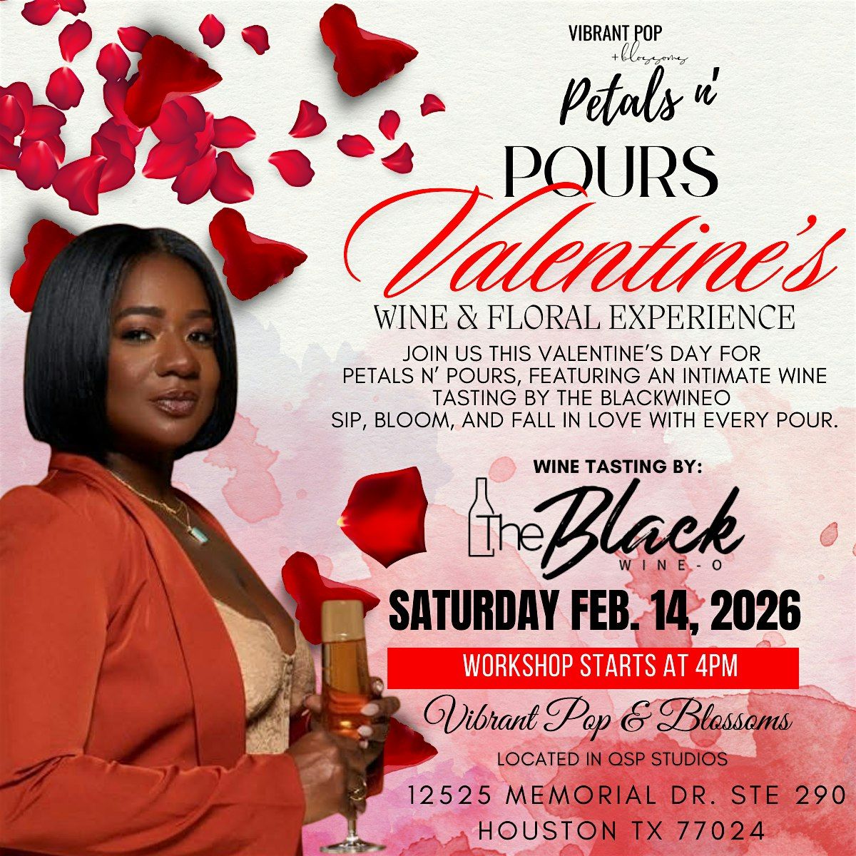 Valentine's Wine & Floral Experience! Blossom and Sip with Vibrant Pop + Blossoms and The Black Wineo! Join us for an enticing sensory experience. Dive into a world of vibrant pop florals and exquisite wine tasting! Don’t miss this colorful escapade that promises to delight both your artistic flair and your taste buds. Create a stunning floral arrangement to take home and leave with tips that’ll have you tasting wine like a pro. Cheers to creativity and discovering your palate!