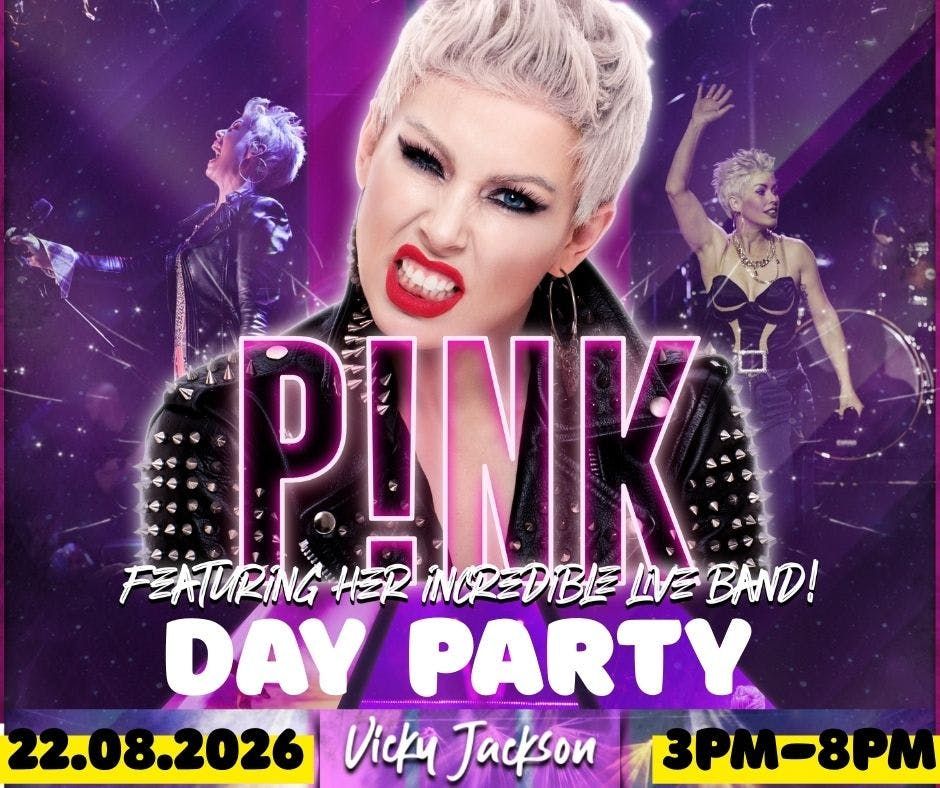 π P!NK DAY PARTY βVICKY JACKSON AND HER FULL BANDSaturday 22nd August | 3PM β 8PM