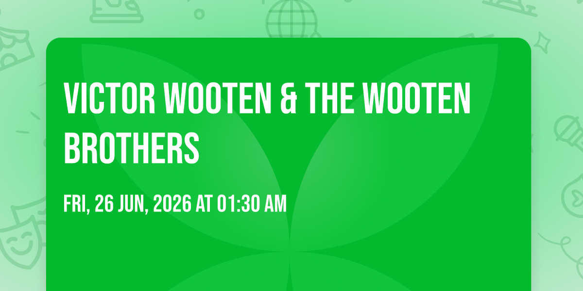 📍 Location: 43.0762, -70.7601✨ Experience the magic of Victor Wooten & The Wooten Brothers, where moments become memories that last a lifetime! 🏛️ The iconic Jimmys Jazz and Blues Club in Portsmouth, NH sets the perfect stage for an unforgettable celebration on June 26th, 2026 at 01:30 AM. 🌟 It's been a curated experience that brings together the best of entertainment and innovation, creating an atmosphere of wonder and excitement. From the moment you arrive, you'll be immersed in a world where the ordinary transforms into the extraordinary. 🎊 Book early to secure your place in what promises to be an event that will be talked about for years to come!