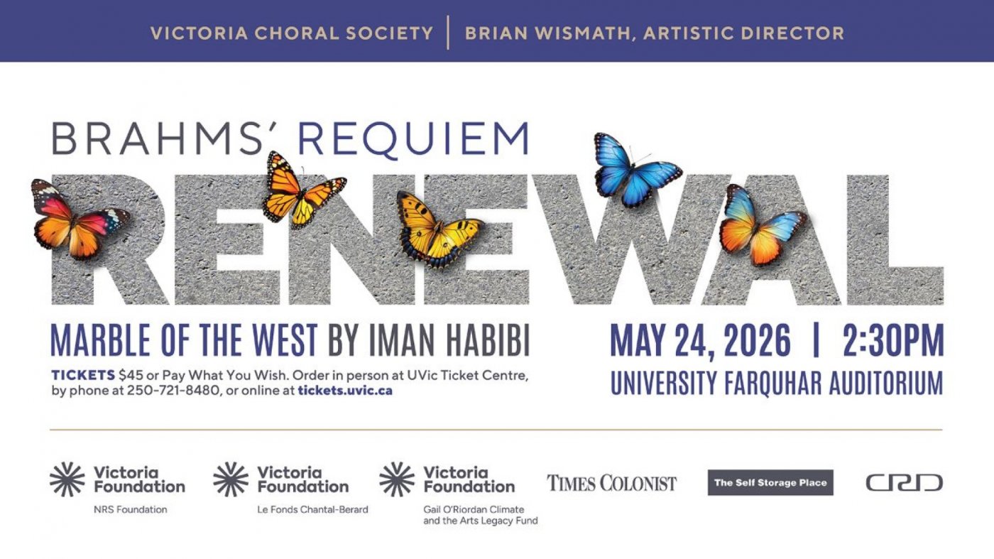 The Victoria Choral Society is thrilled you can join us for our final concert of the season! Our program features the beloved classic, Ein deutsches Requiem, a monumental work by Johannes Brahms. Also, featured is the world premiere choral-orchestral arrangement of Marble of the West by Canadian-Iranian composer, Iman Habibi, a moving work that addresses the impact of environmental change – a powerful pairing to end our season.