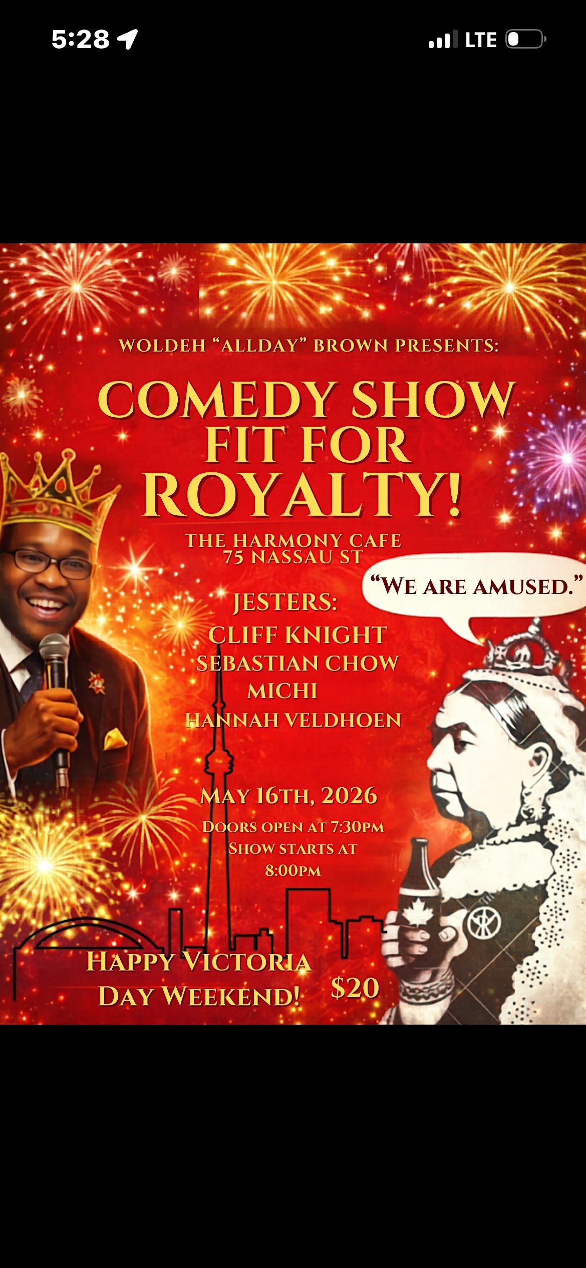 Let’s celebrate Victoria Day Weekend Laughing! Some of the best comedians in the city, funny enough to make even a queen laugh! (Or King)