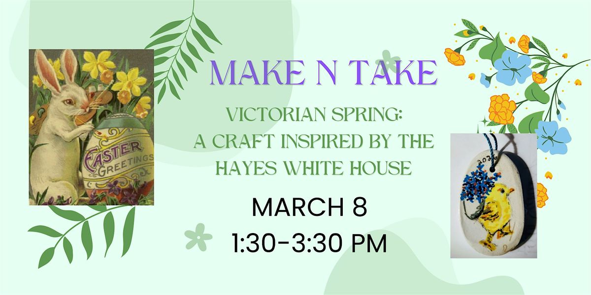 Did you know President and Mrs. Hayes started the annual White House Easter Egg Roll, which continues today? We will hear the history of the Easter Egg Roll in Washington D.C., and view our Easter Egg collection, the largest privately owned White House Easter Egg display. Using Victorian era springtime cards as inspiration, paint a small clay ornament. Participants will use acrylic markers on a premade clay shape. Shapes include ovals, butterflies, bees, and dogs. The ornament will be sealed with varnish or Mod Podge.