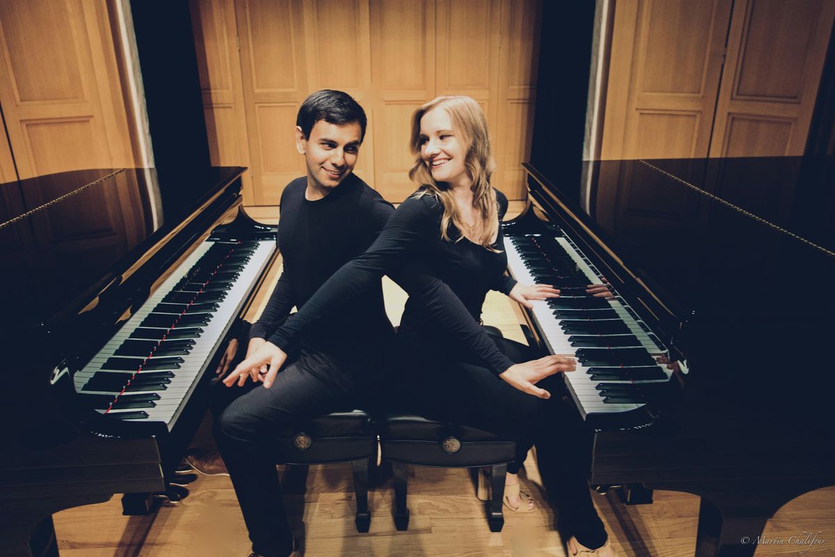 Piano virtuosi Vijay Venkatesh and Eva Schaumkell perform music for two grand pianos in a spectacular California-modern home. Show opens with piano eight hands performance with Kaitlin & Emily Webster-Zuber.