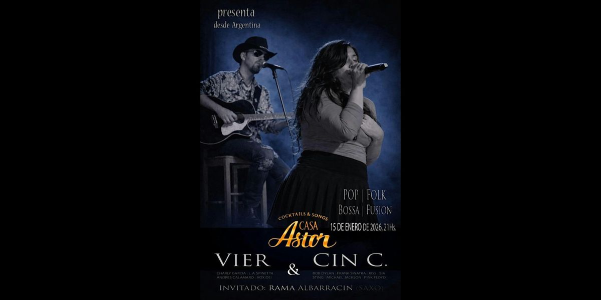 Disfruta del mejor Pop Folk Bossanova Fusion con Vier & Cin C. degustando los mejores cócteles.