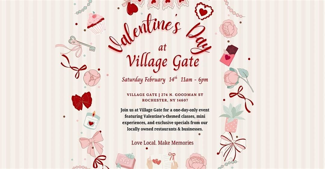 Join us for a one-day-only Village Gate Valentine’s Day Experience, where our collective of small, locally owned businesses come together to offer unique classes, mini-sessions, exclusive experiences, and special Valentine’s Day promotions—all under one roof.