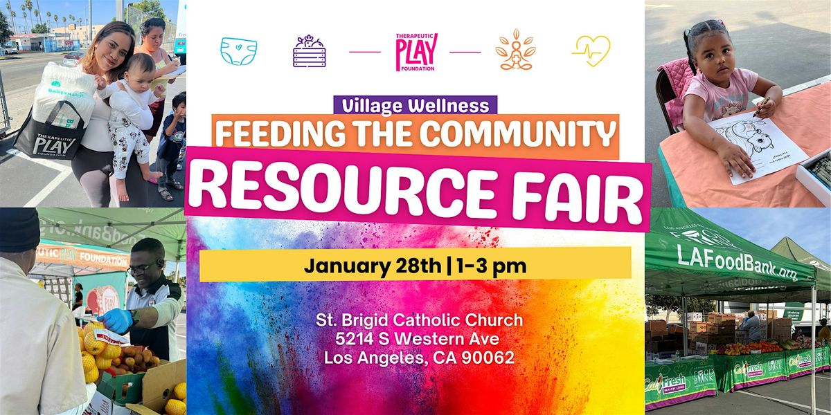 The Therapeutic Play Foundation invites you to our monthly Village Wellness event at St. Brigid Church, where we provide free groceries, diapers, and community resource referrals to individuals and families in need.