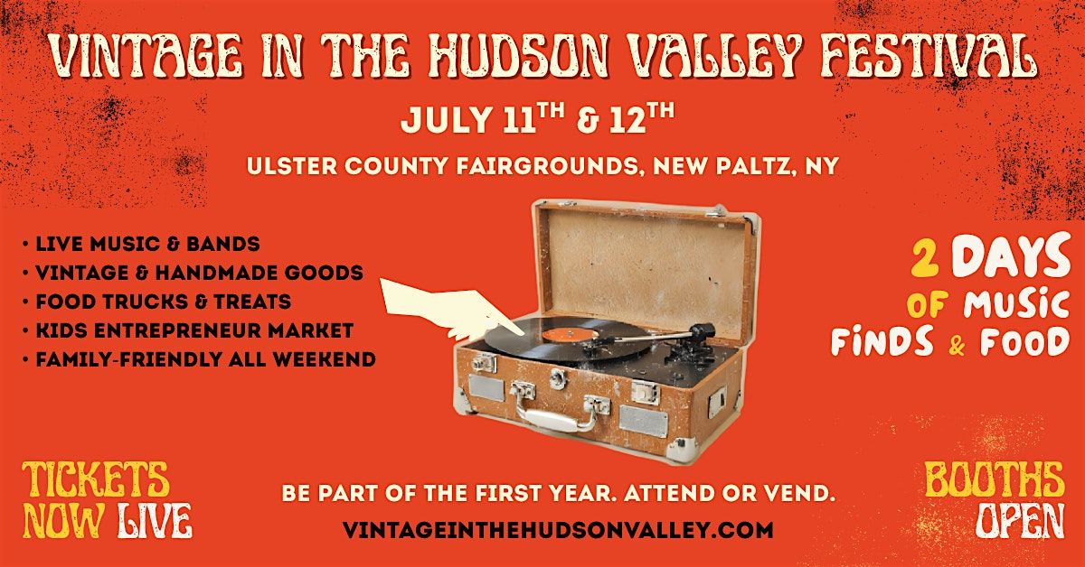 Vintage in the Hudson Valley is a two-day outdoor vintage festival held at the Ulster County Fairgrounds in New Paltz, NY. The event features antiques, vintage fashion, salvage, retro home goods, handmade products, indie brands, and multiple food and beverage vendors from across the Northeast. The festival is family-friendly and designed to provide a high-quality shopping experience in a relaxed outdoor environment.
