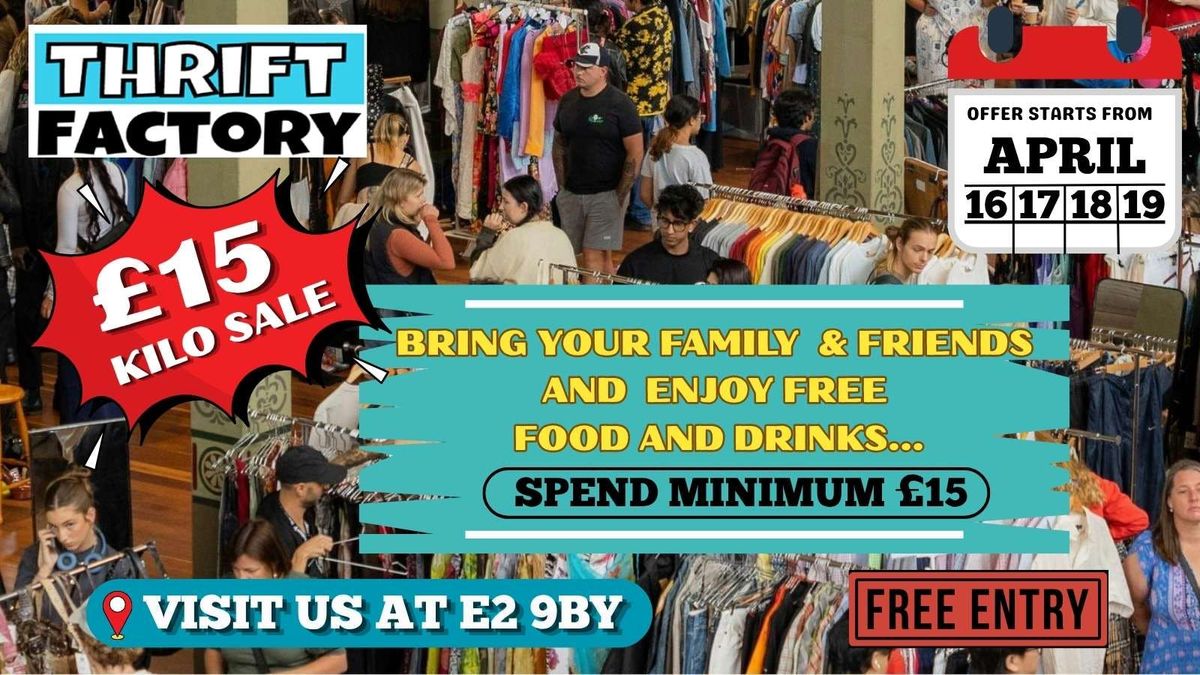 Looking for the best Vintage Sale in London? Join Thrift Factory from April 16-19 for a massive stock refresh! Grab high-end branded and vintage pieces at a fraction of the price—only £15 per kilo.What’s in store?✅ Massive collection of Men's & Women's Vintage Clothing.✅ Free Entry for all attendees.✅ Bonus: Spend £15+ and get Free Food & Drinks to fuel your rummage!