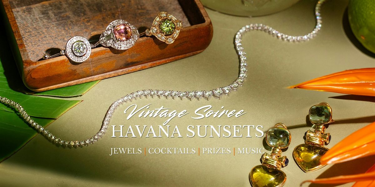Step into the warm glow of our Vintage Soirée: Havana Sunsets, where vintage glamour meets Cuban-inspired celebration. Enjoy live music, complimentary drinks, including a signature cocktail as you explore our collection of vintage, antique and bespoke jewels.