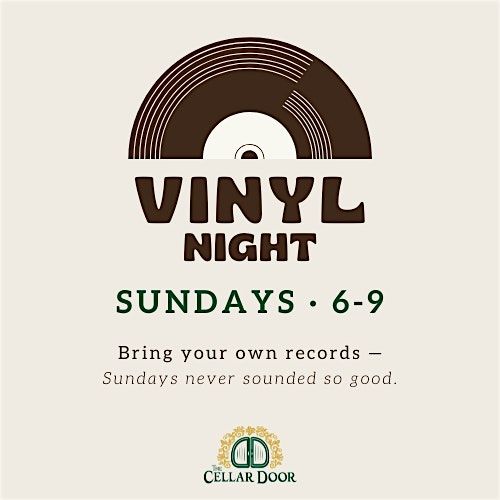 Vinyl Night happens every Sunday from 6–9 PM at The Cellar Door. Bring your own records, grab a drink, and enjoy a laid-back evening of music, with DJ Jose keeping the vibe going between spins.