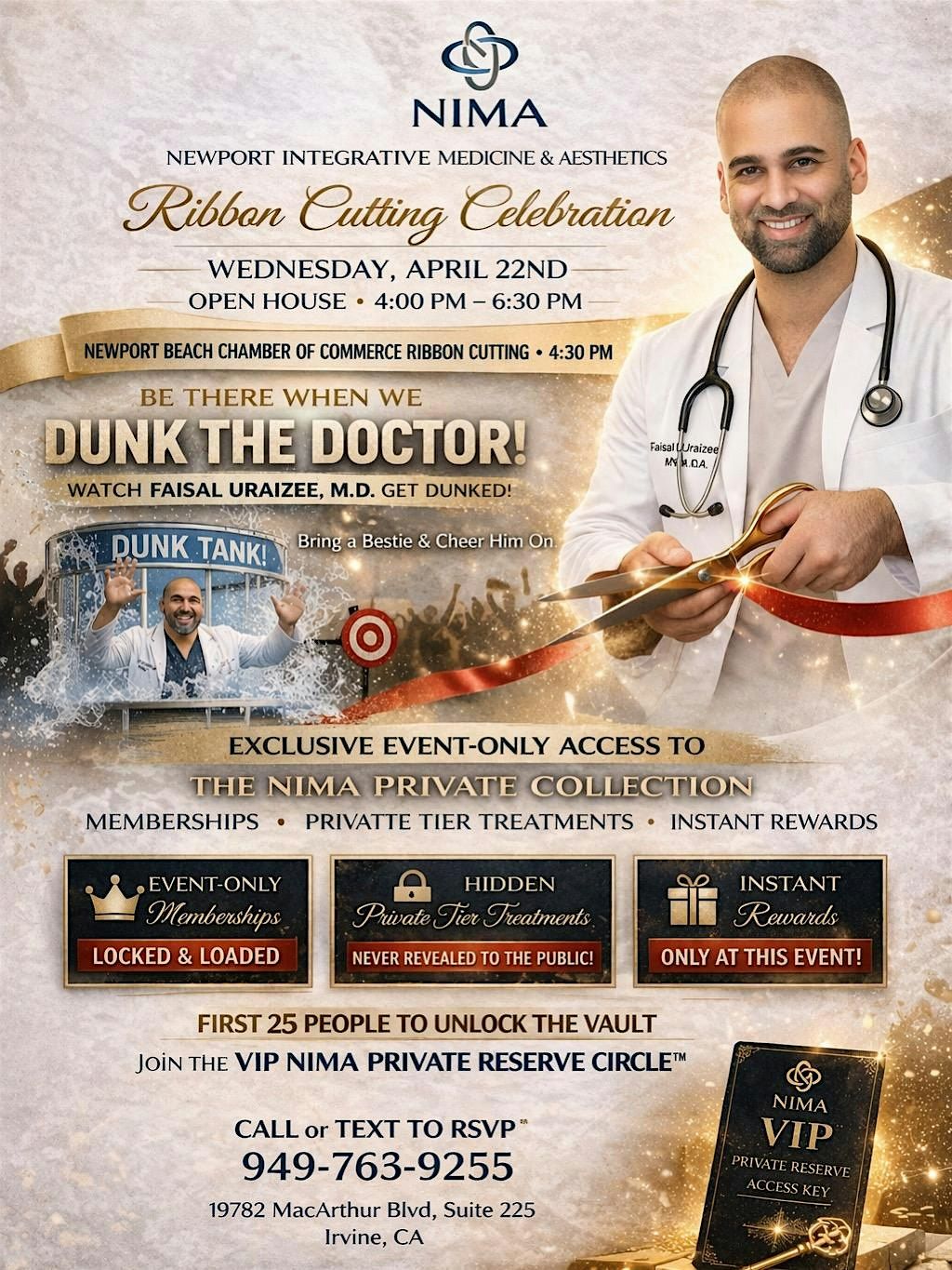 - Special Event Pricing: One-time offers on NIMA memberships and treatments available only during this celebration