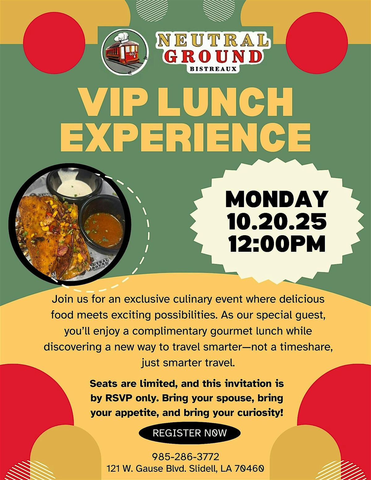 Join us for an exclusive culinary event where delicious food meets exciting possibilities. As our special guest, you’ll enjoy a complimentary gourmet lunch while discovering a new way to travel smarter—not a timeshare, just smarter travel.