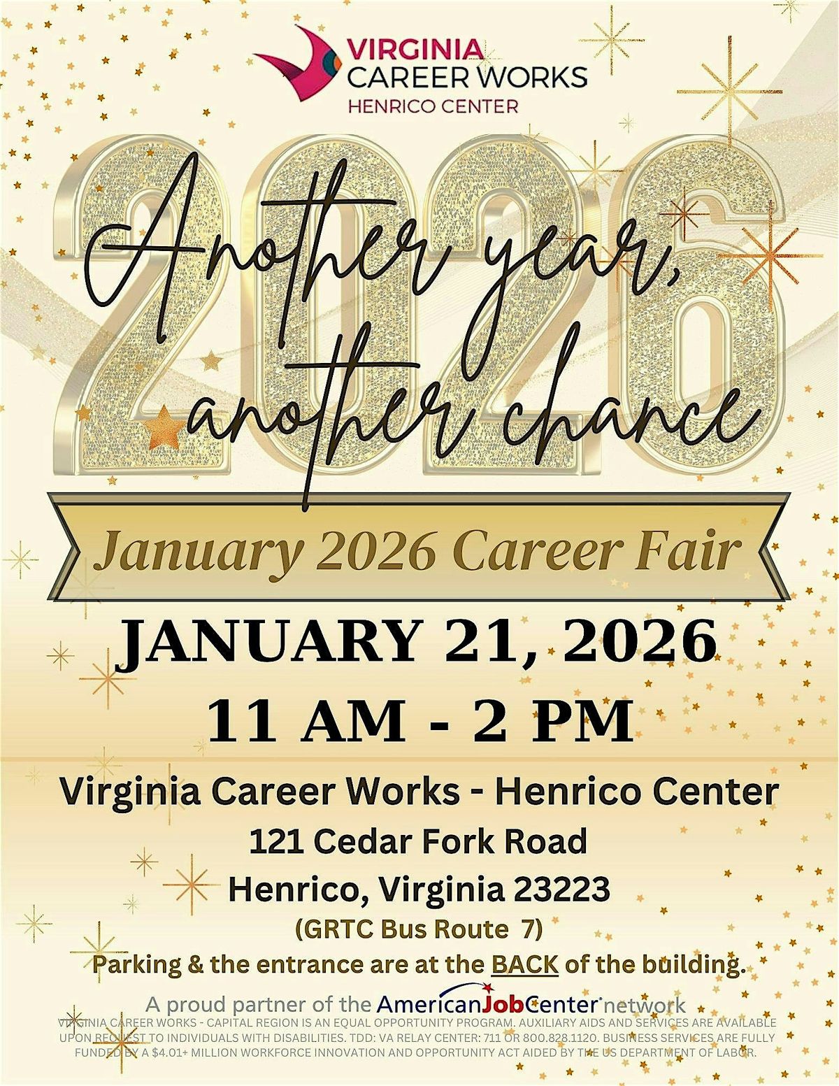 You are cordially invited to the Virginia Career Works - Henrico Center's January 2026 Career Fair!