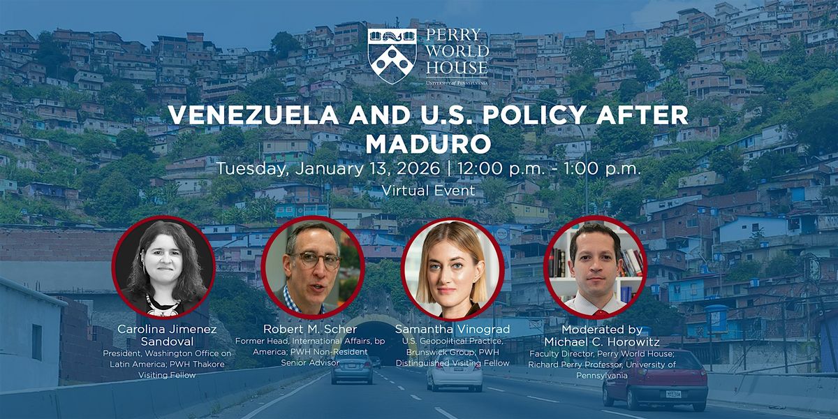Following the U.S. strikes in Caracas and subsequent capture of Venezuelan President Nicolas Maduro, there are many questions that remain. What will governance in Venezuela look like in the short- and long-term, and how will that affect Venezuelan citizens? How will these U.S. actions affect foreign policy, particularly in the Western Hemisphere? How will access to Venezuelan oil affect global energy markets and prices? And what will be the long-term ramifications in the global arena to how the United States has moved forward in Venezuela? Join Perry World House for an in-depth, virtual discussion of these topics and more.
