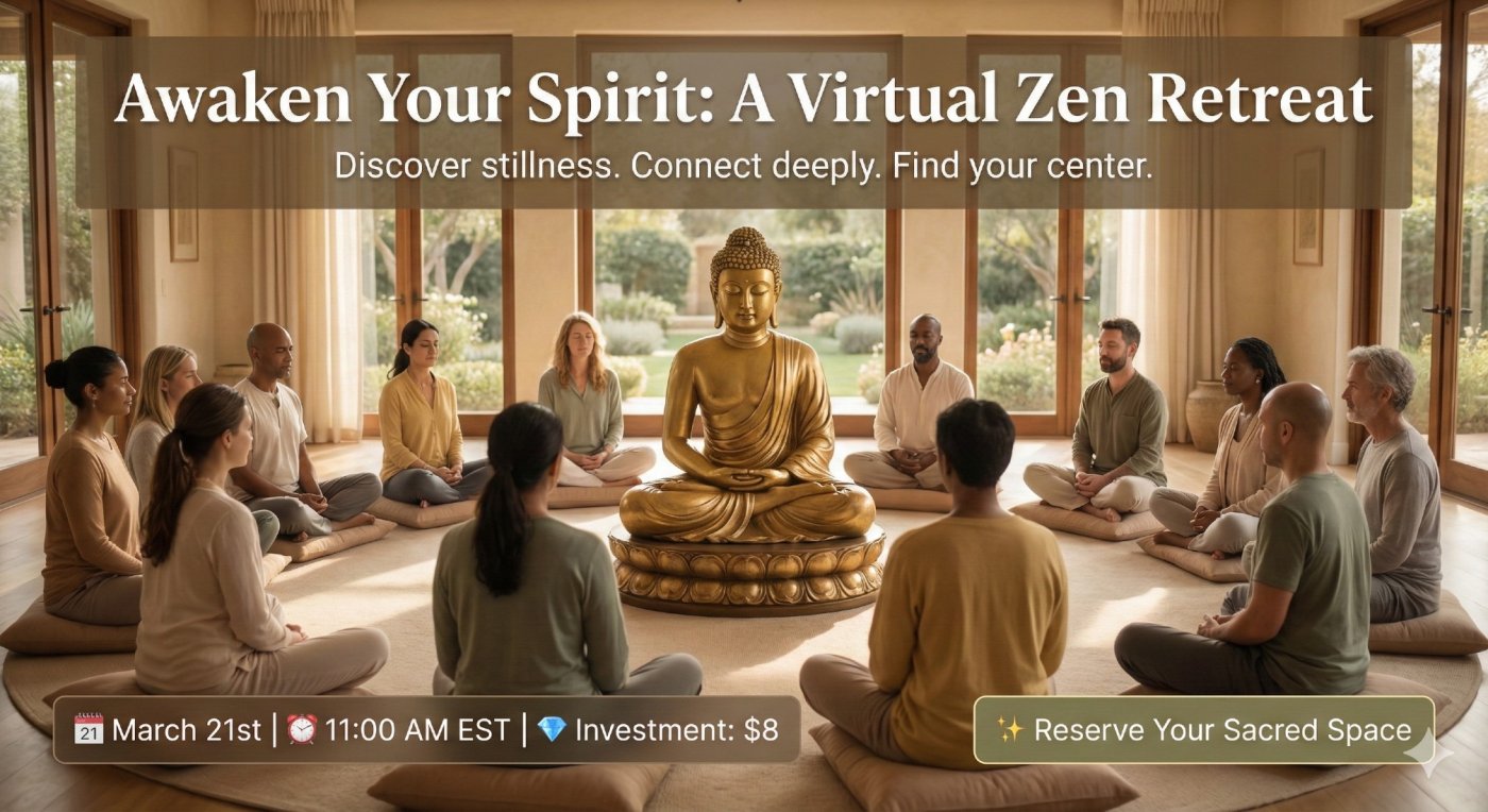 Immerse yourself in a transformative journey at the Virtual Zen Retreat - Experience who you are hosted by Mystics Perception!