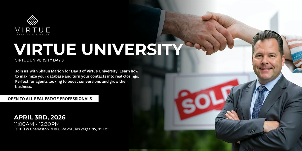 Join us with Shaun Marion for Day 3 of Virtue University! Learn how to maximize your database and turn your contacts into real closings. Perfect for agents looking to boost conversions and grow their business.