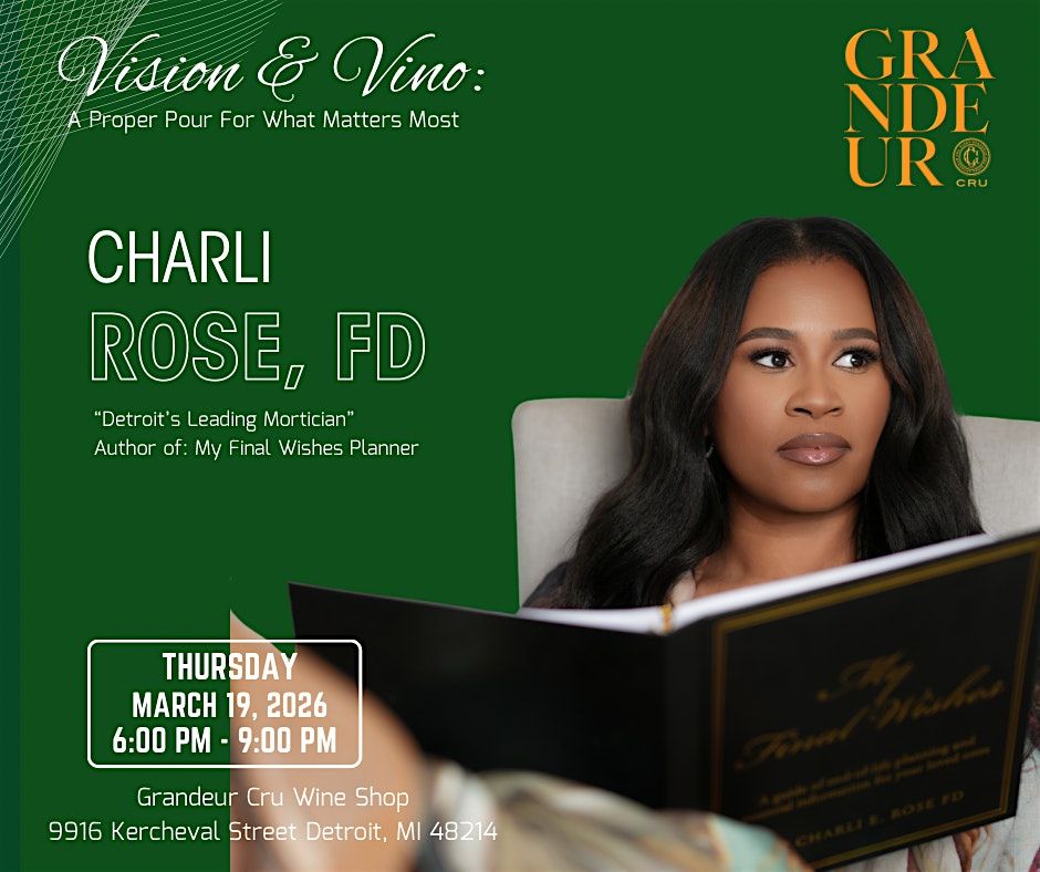 Join Charli E. Rose, FD for Vision & Vino an intimate evening centered on conversation, clarity, and legacy planning.