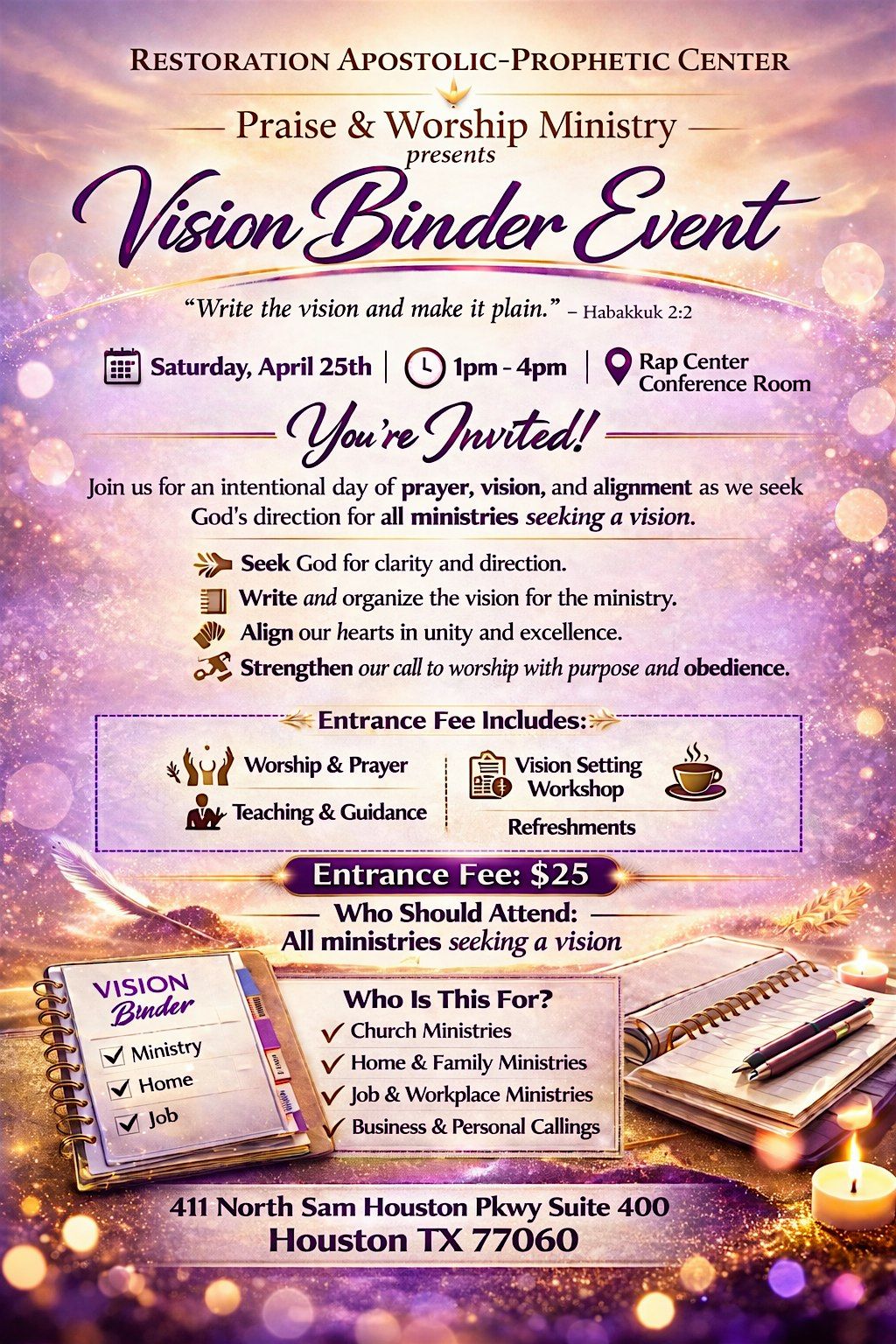 An intentional day to gain clarity, direction, and God-centered vision for your ministry or calling. Open to all—no church ministry required