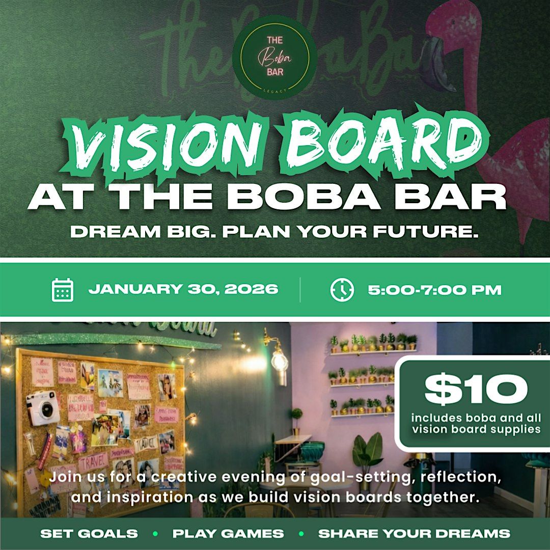 Join us for Vision Board at The Boba Bar, a creative and inspiring evening focused on goal-setting, reflection, and dreaming big. This hands-on event invites you to slow down, get intentional, and visualize the future you want to create.