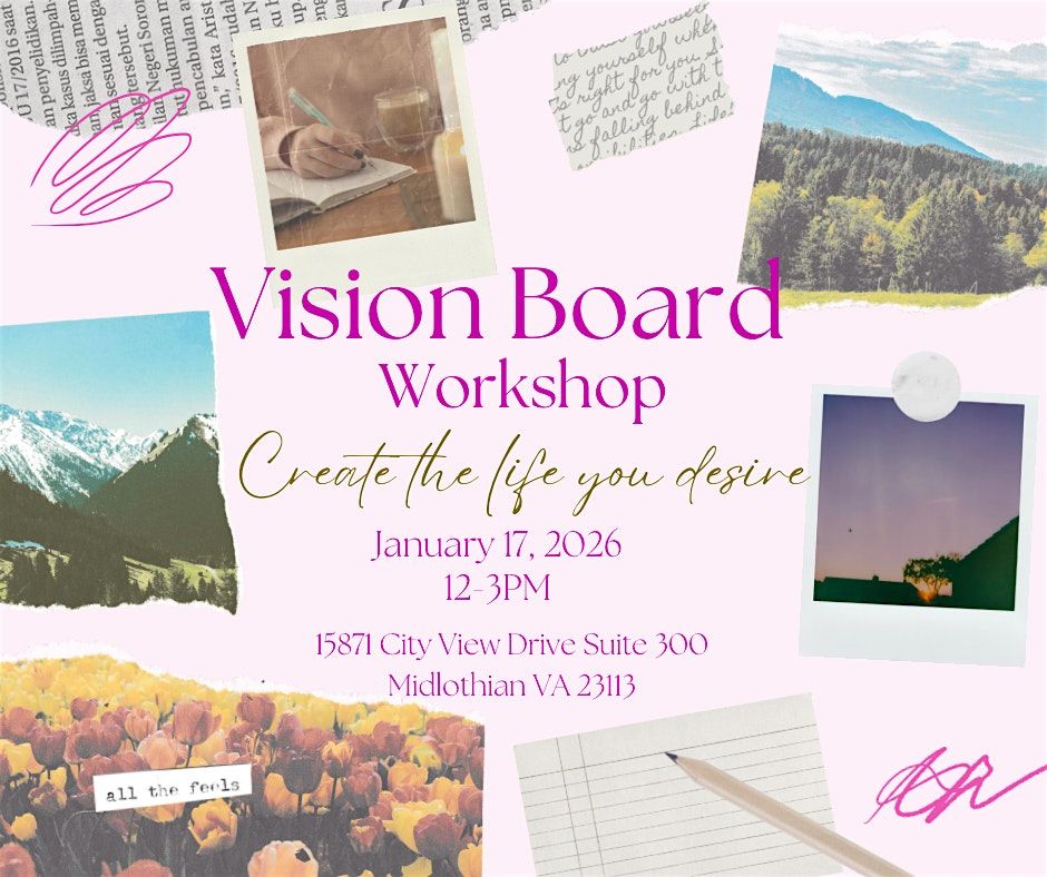 Join me for a free Vision Board Workshop designed to help you gain clarity, set intentional goals, and bring your vision to life. I will guide you through reflecting on where you are, defining where you want to go, and visually mapping out your goals for the year ahead. All supplies are providedโjust bring your vision and an open mind.