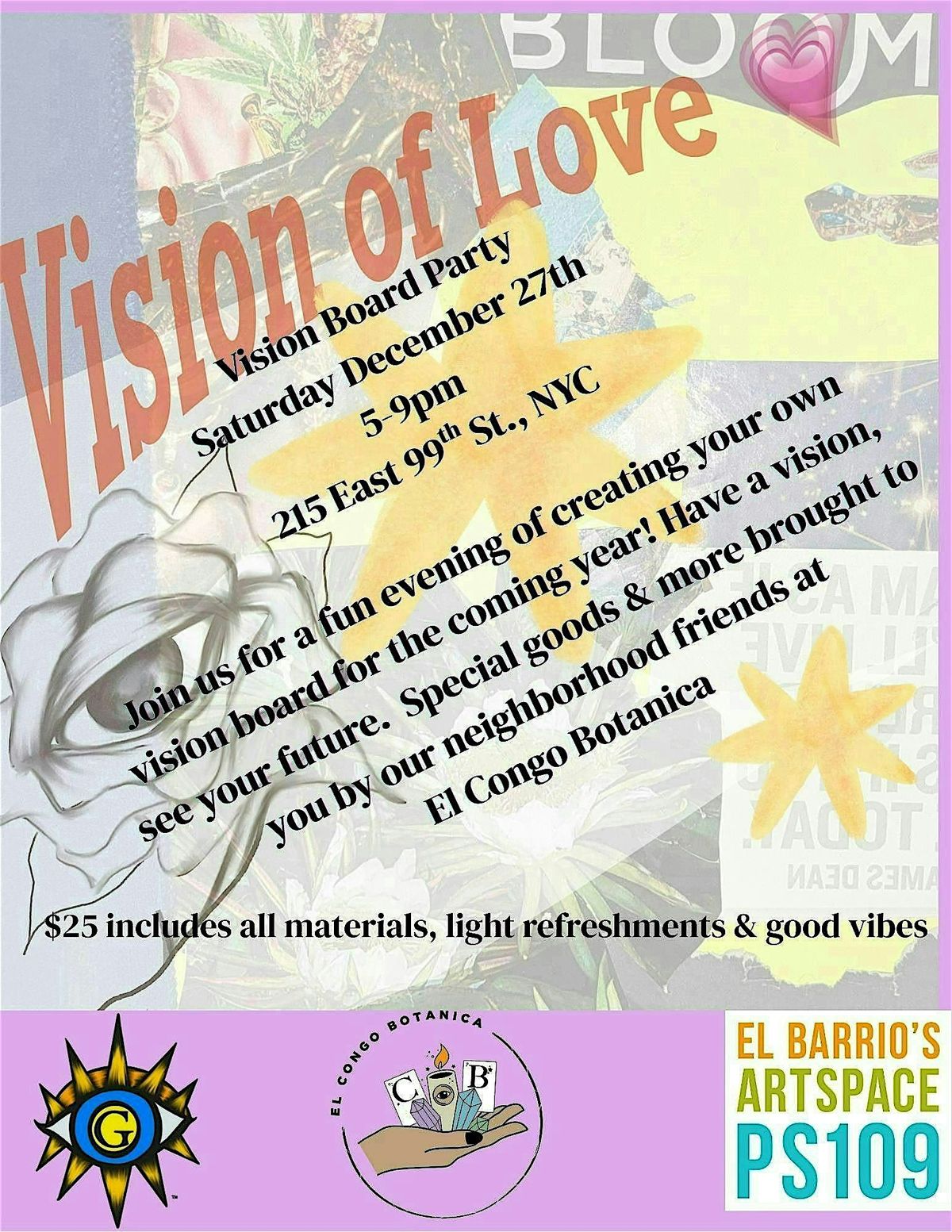Join us for a fun evening of creating vision boards for the coming year! All materials included, just bring your fabulous self and good vibes! We are excited to be joining forces with El Congo Botanica that will be supplying us with spiritual tools and goods that help us clear the way for an amazing New Year! I look forward to seeing you soon! Xo, Gia & Friends