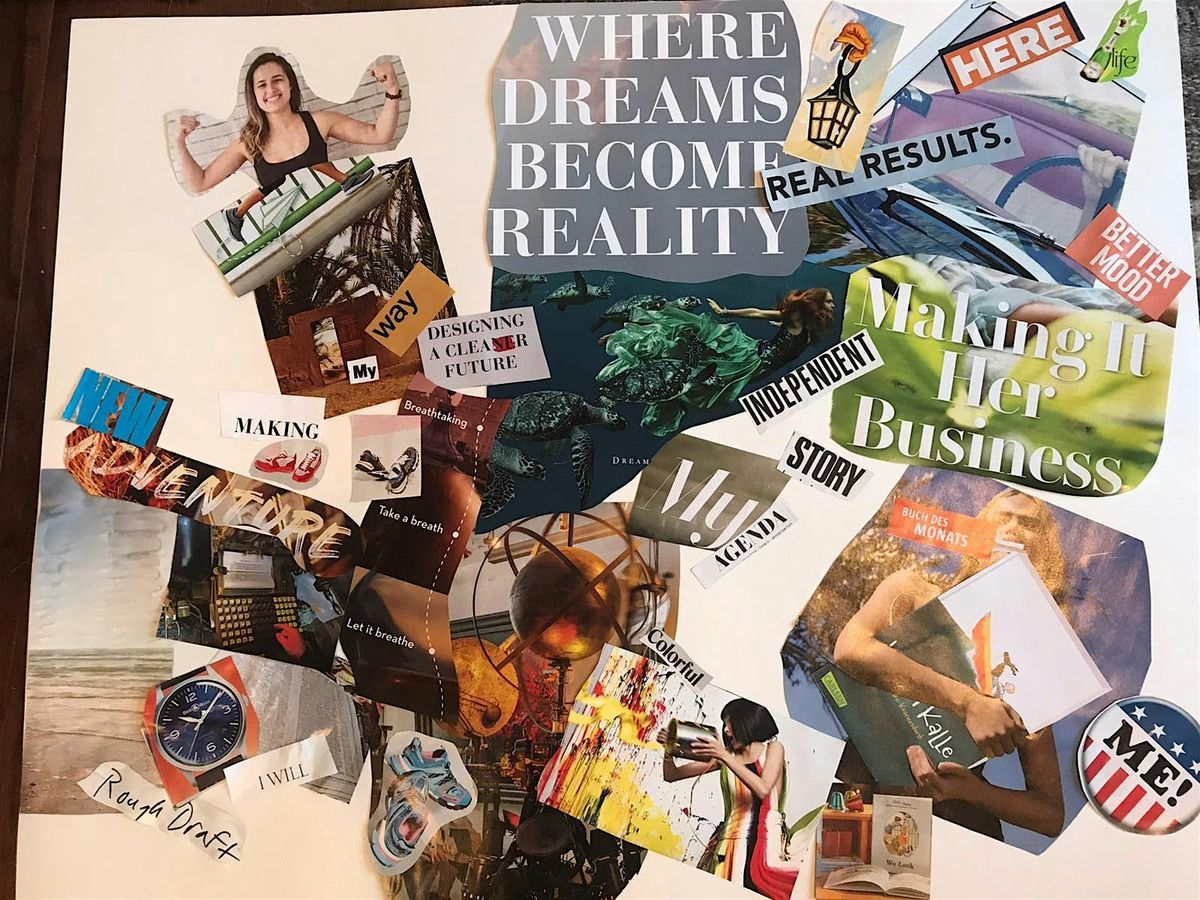 Ein Visionboard ist ein kraftvoller Weg, Klarheit über deine Träume, Wünsche und Ziele zu bekommen, in dem du sie greifbar, fühlbar und konkret machst. Beim Gestalten richtest du deinen Fokus auf das, was du wirklich möchtest, intuitiv und nicht kopfgesteuert. Du deckst Ressourcen und Elemente auf, die dir noch unbekannt sind, aber Teil des Erfolges sein können. Gleichzeitig lässt du Gedanken weg, die du nicht mehr haben möchtest. Wie beim Aussortieren deines Kleiderschrankes: der Raum, der dadurch frei wird, dass man etwas weglässt, bietet Platz für Neues.