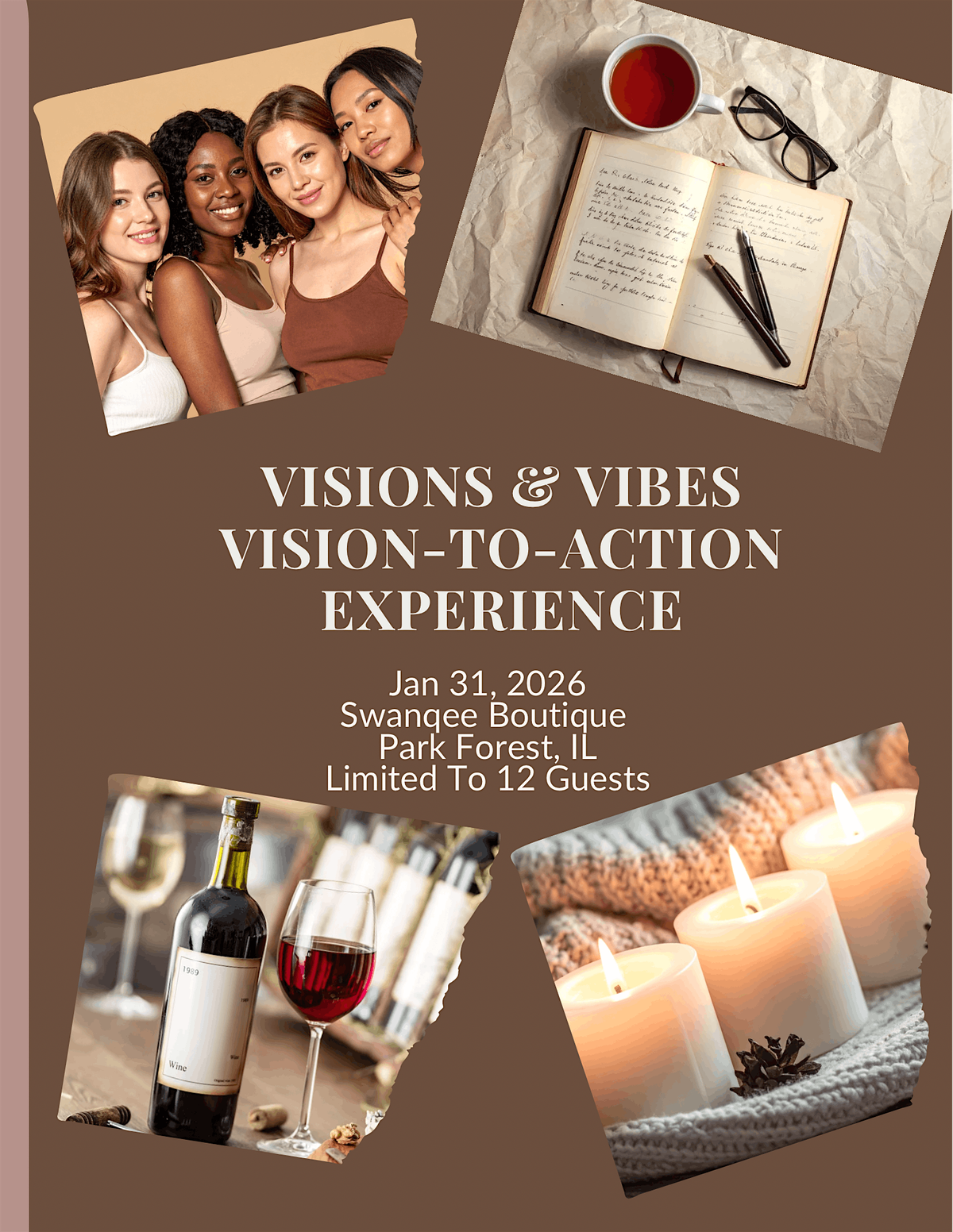 Vision & Vibes is an intimate, guided Vision-to-Action experience designed to help you reflect, reset, and move through 2026 with clarity and intention.