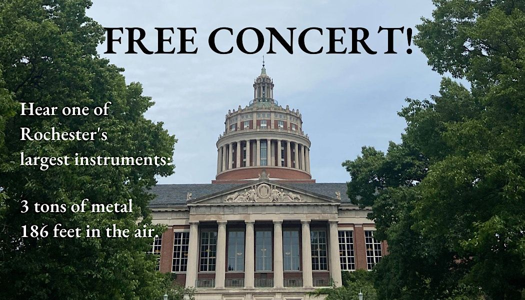 Sponsor: Eastman Community Music School (ECMS). Free admission courtesy of ECMS. Open air concert offered by the carillon students at Arthur Satz Music Department, University of Rochester.