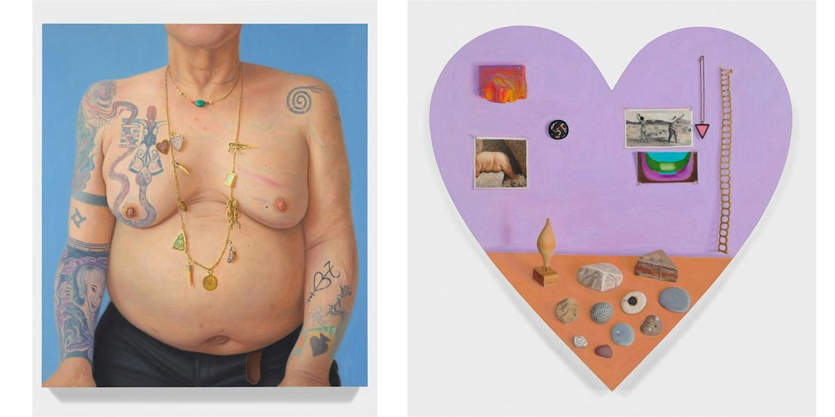 Artwork (left–right): Genesis, 2019. Oil on linen, 58 x 43.5 in. Altar for Laura Aguilar, 2022. Oil on canvas, 64 x 63 in. Photos: Tom Powel Imaging.