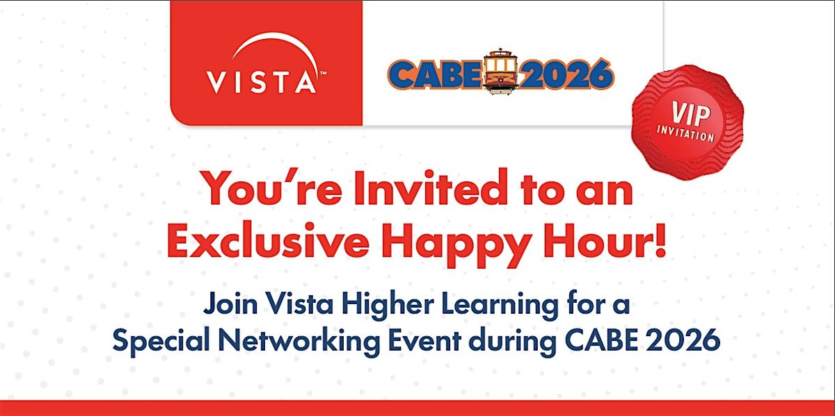 You’re invited to an exclusive VIP happy hour hosted by Vista Higher Learning during CABE 2026 Conference. Unwind after a busy conference day, connect with peers, and enjoy an easygoing, in‑person evening designed for conversation and community.