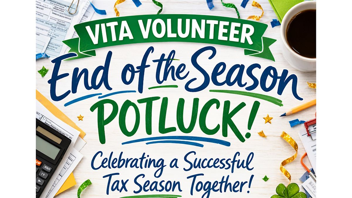 Hey volunteers! Join us in person for the VITA Volunteer Appreciation End of the Season Pot Luck. It’s our way of saying thanks for all your hard work this season. Bring a dish to share, enjoy great company, and celebrate together!