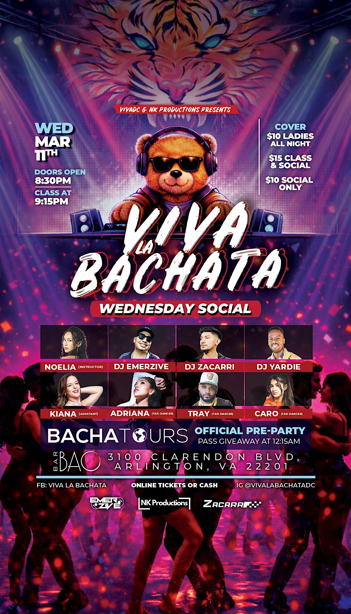Parking for Viva La Bachata @ Bar Bao (after 8 PM):Garage Options (all ~$6 after 5 PM):Clarendon Center South – 3030 Clarendon Blvd
