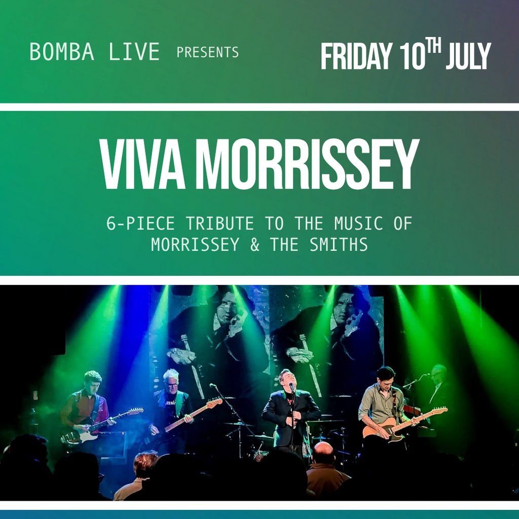 Join us on Friday 10th July, as Bomba Live welcomes VIVA MORRISSEY - a 6-piece tribute band paying homage to the music of Morrissey and The SmithsMusic Genres : Rock, Indie, Alternative