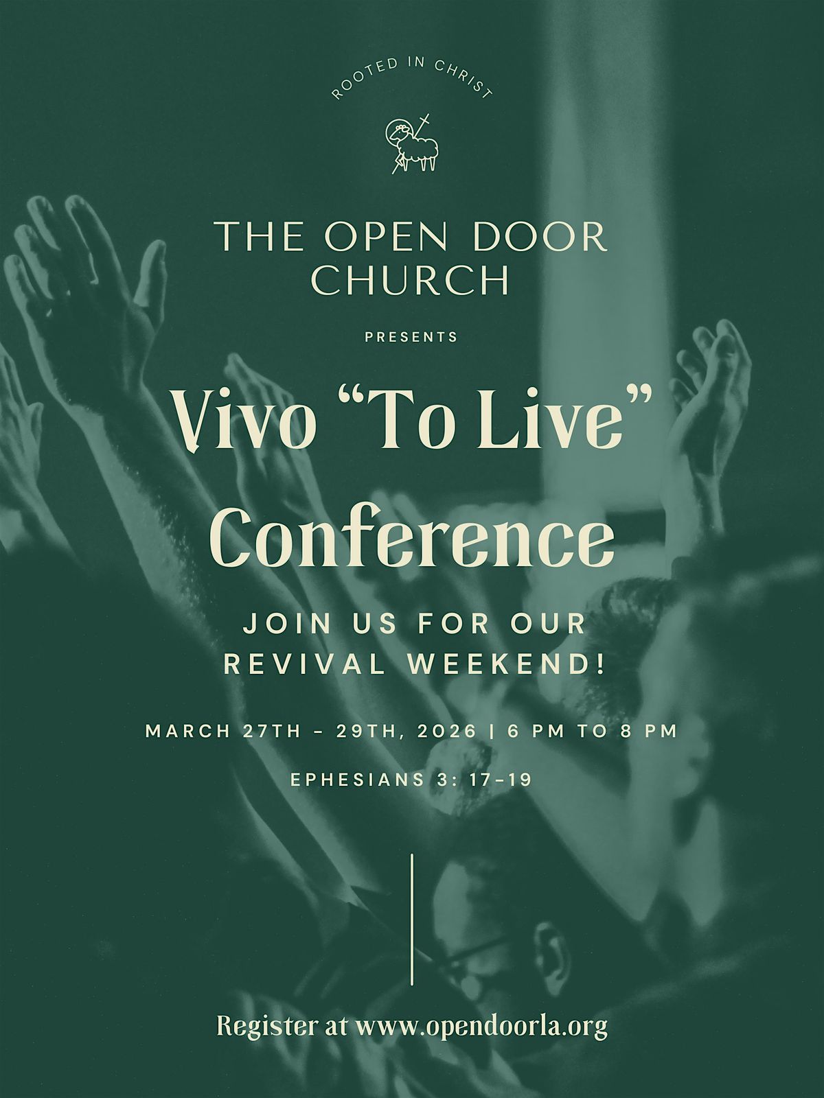 Join us March 27–29, 2026 for our TOD Church Revival. This three-day gathering is designed to refresh and strengthen our church family while also creating space for those who are curious about Christ to come and experience community and worship.