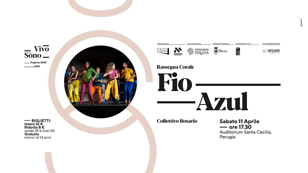 Fio Azul è un rituale, è un concerto in cui gli unici strumenti sono i corpi, è una performance danzata, è uno spettacolo teatrale: è tutte queste cose insieme. Guidato dalla volontà di immergersi nel mondo della tradizione e della cultura popolare, il Collettivo Rosario crea un viaggio musicale irresistibile, che coinvolge il pubblico attraverso pattern ritmici e melodici che migrano dal Brasile all’Africa, dal Sudamerica all’Italia.