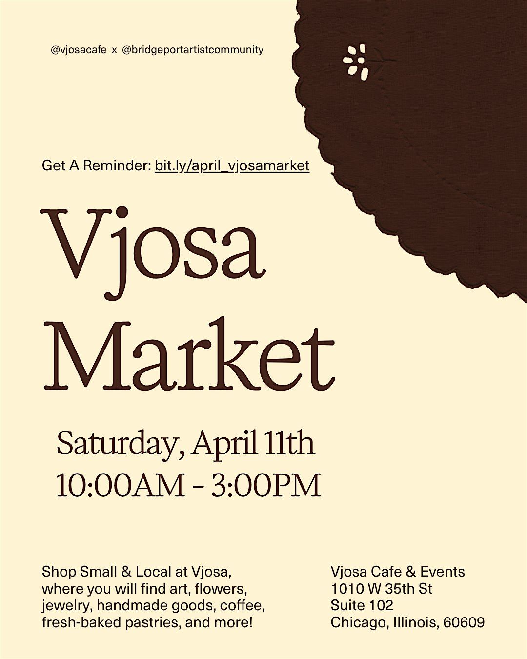Shop Small & Local at Vjosa, where you will find art, flowers, jewelry, handmade goods, coffee, fresh-baked pastries, and more!About this Event