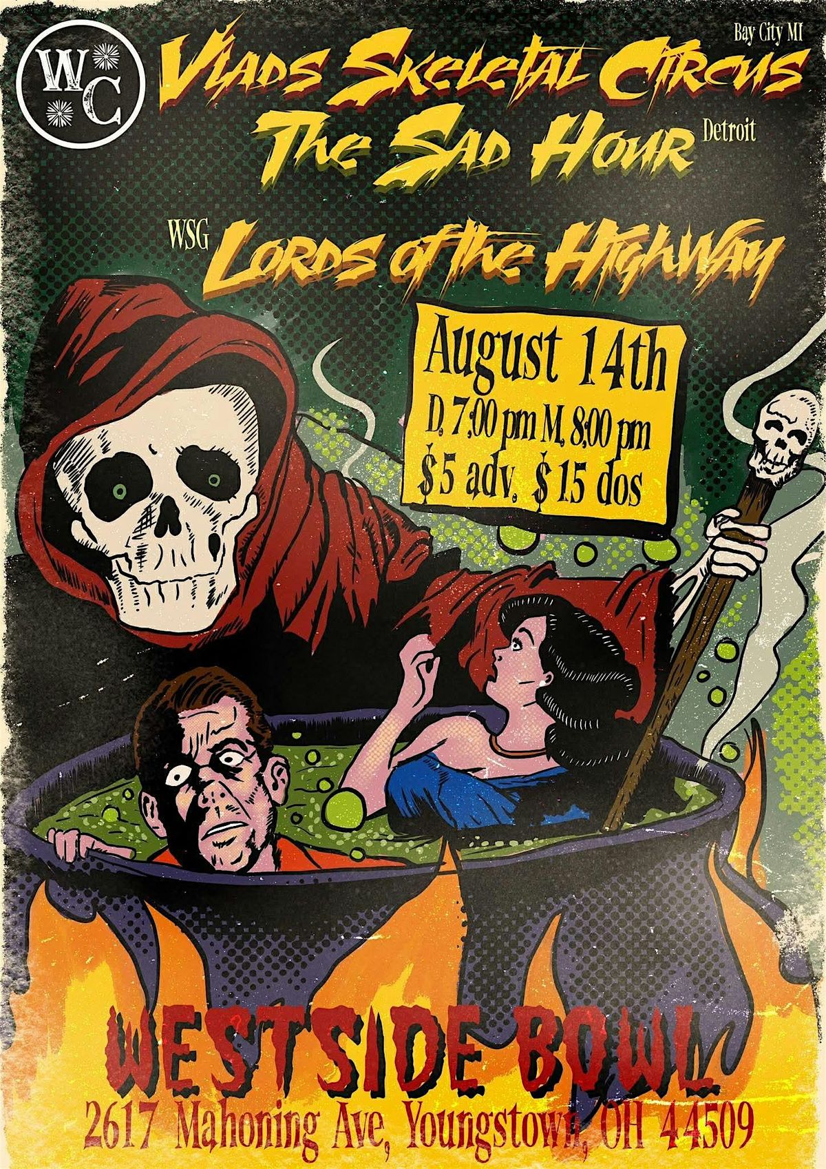 Come to the Westside Bowl to see Vlad's Skeletal Circus, The Sad Hour, and Lords of the Highway!