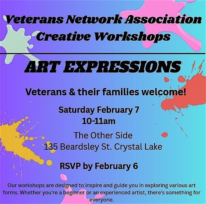 Welcome to the VNA Creative Workshops: ART EXPRESSIONS event! Join us at 135 Beardsley St on February 7, 2026 at 10:00 AM (Central Time) for a day filled with creativity and inspiration.