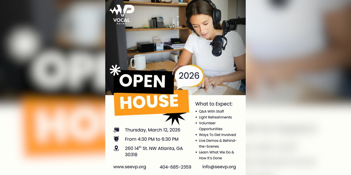 Join us for Vocal Point’s First Open House, a special opportunity to step inside the heart of our organization and learn how we bring stories, news, and print materials to life through audio.
