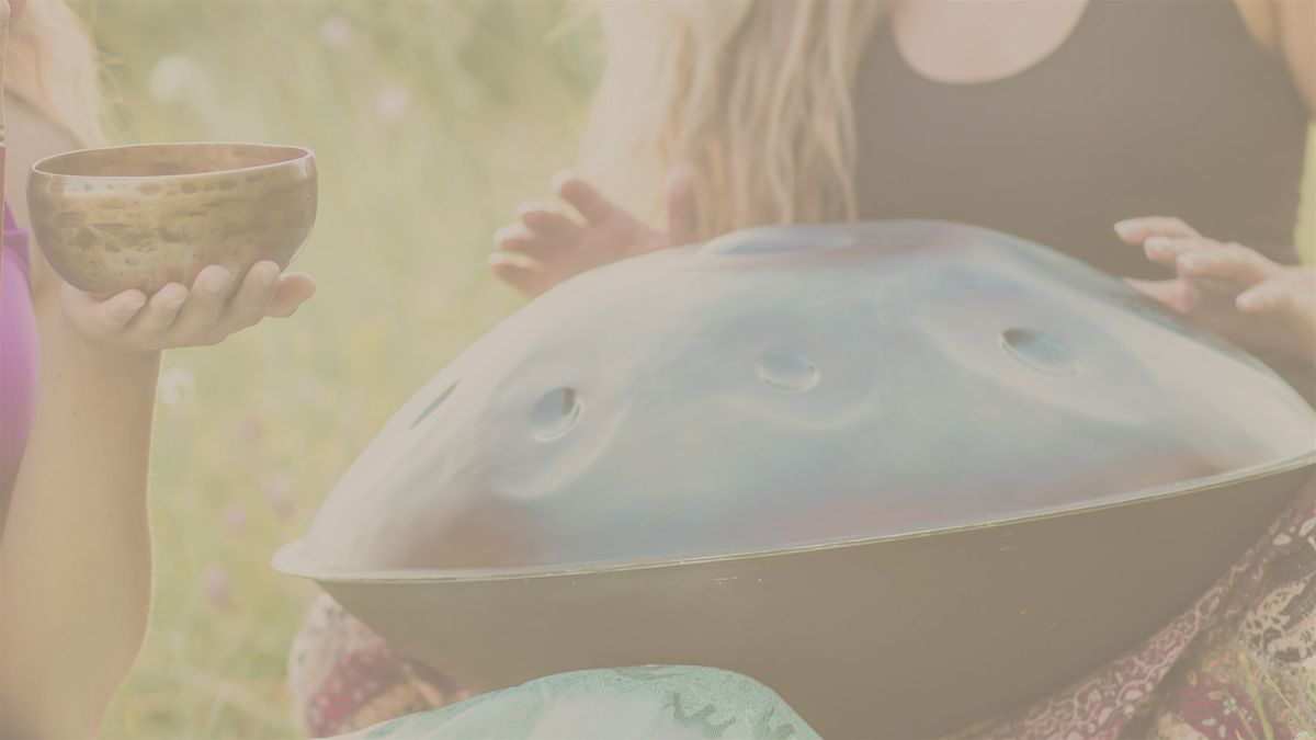 • Harmonic instrument support with tongue drums, crystal bowls, and handpan