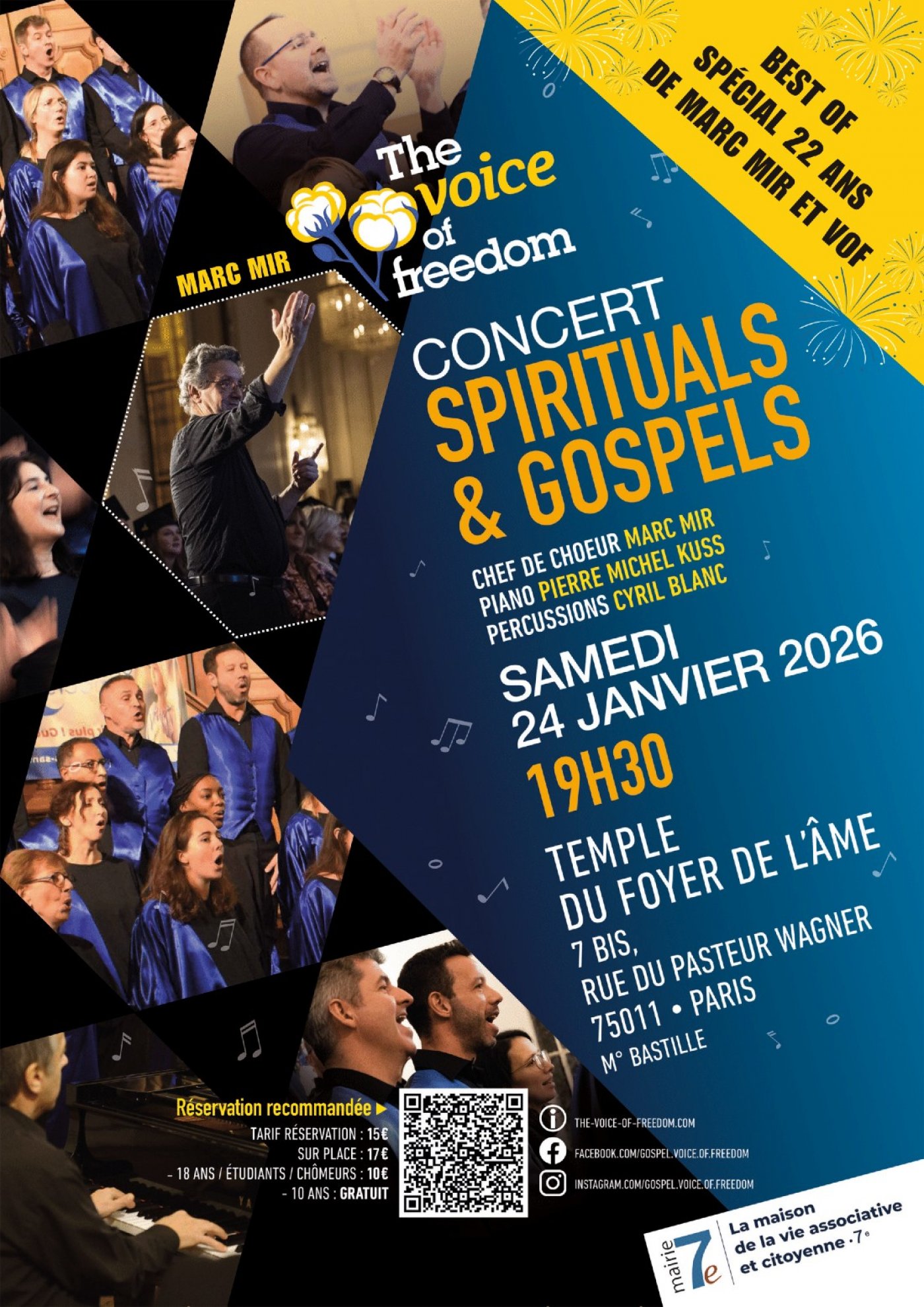 Pour célébrer la nouvelle année, notre chorale The Voice of Freedom vous offre cette fois-ci un concert BEST OF exceptionnel de Spirituals et Gospel sous la direction de Marc Mir, à l'occasion de son dernier concert à nos côtés, après 22 belles années de collaboration.