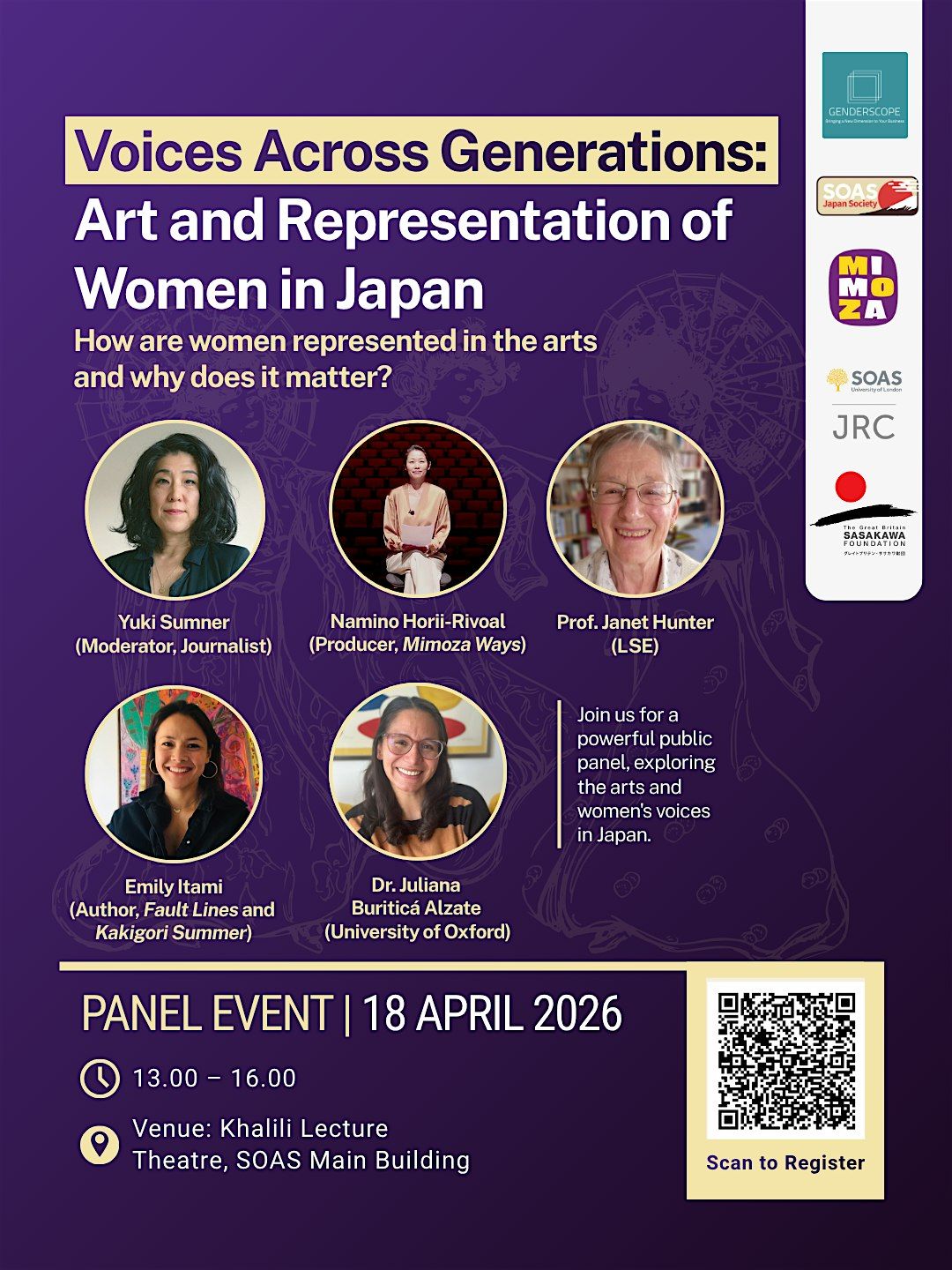 Hosted by Genderscope, SOAS Japan Society & MIMOZA WAYS, with the generous support of the Japan Research Center (SOAS) and the Great Britain Sasakawa Foundation.